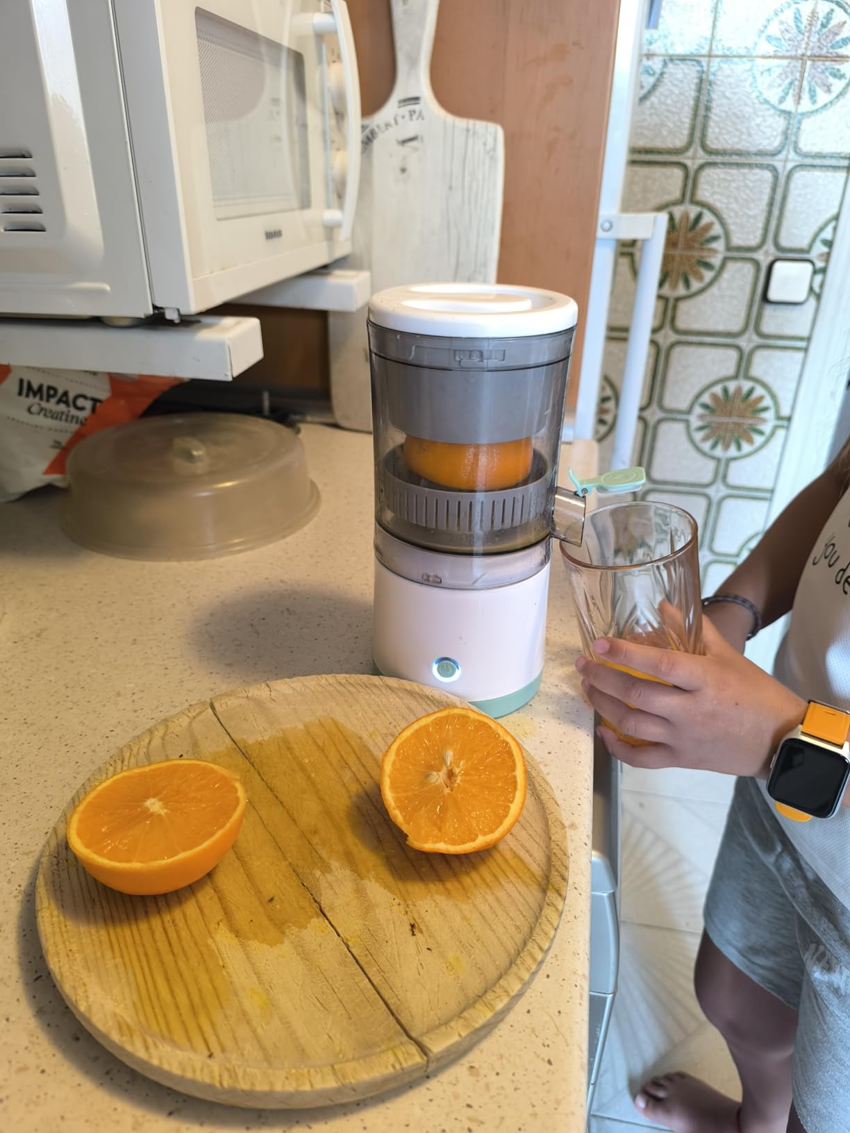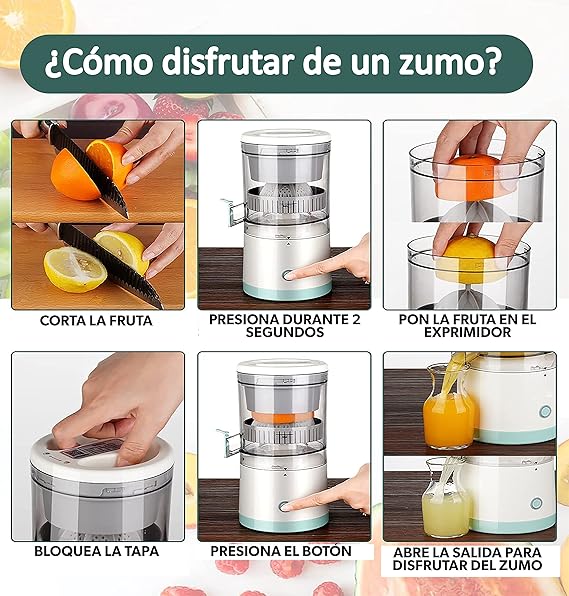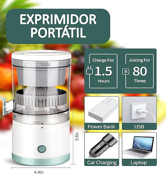 Su diseño recargable te brinda total libertad para usarlo en cualquier lugar, ya sea en la oficina, el gimnasio o durante un viaje. Gracias a su puerto USB, puedes cargarlo fácilmente desde tu computadora, un cargador portátil o incluso el auto, asegurándote de que siempre esté listo para usar. Exprime tu creatividad combinando tus frutas favoritas y disfruta de jugos frescos, naturales y llenos de sabor sin esfuerzo. ¡Práctico, compacto y siempre a tu alcance, es la solución perfecta para una vida saludable y sin complicaciones!"